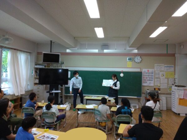 アルファ化米と通常のお米の違いがどんなところかや、出来上がる時間までに防災のクイズを出して防災について知ってもらう時間をつくりました。